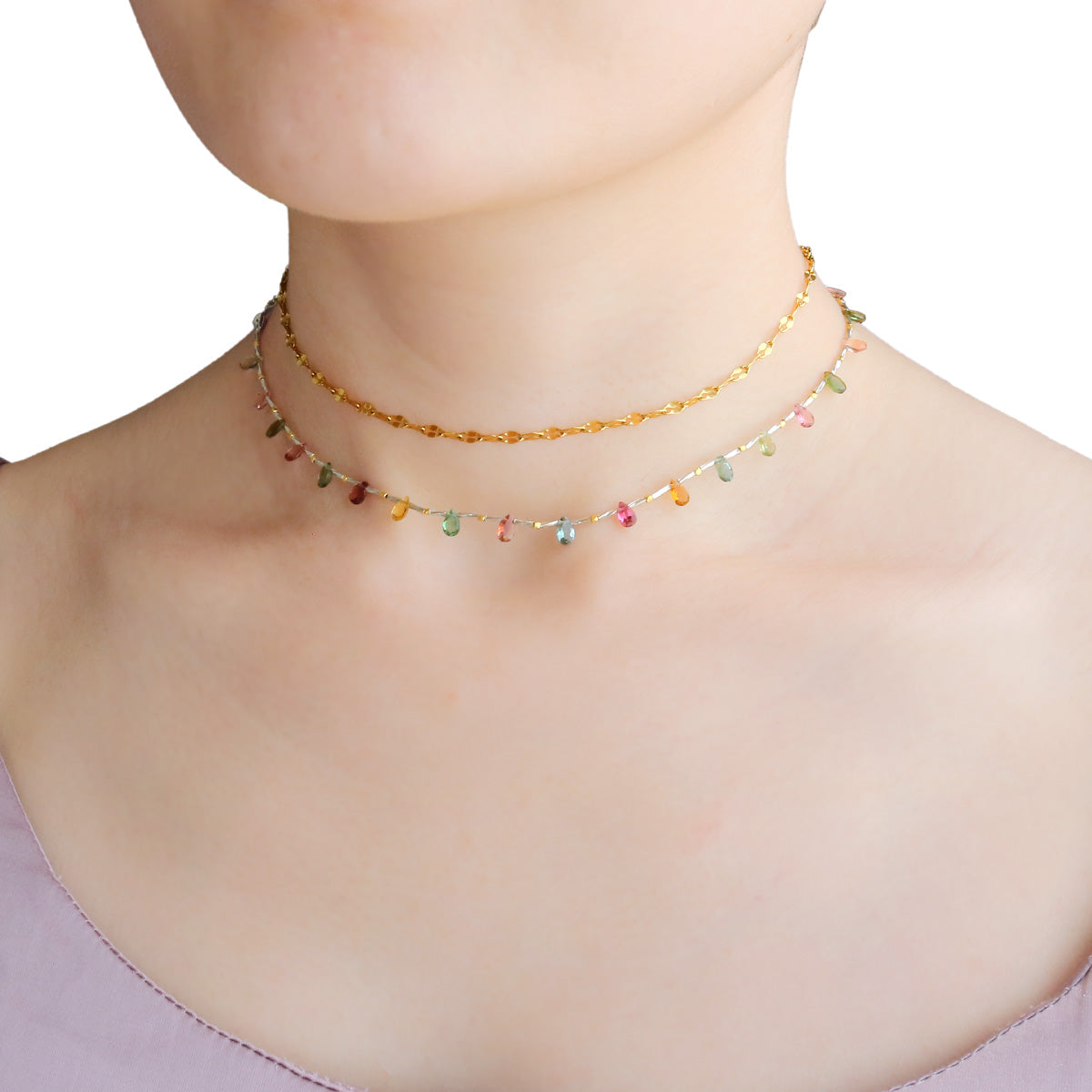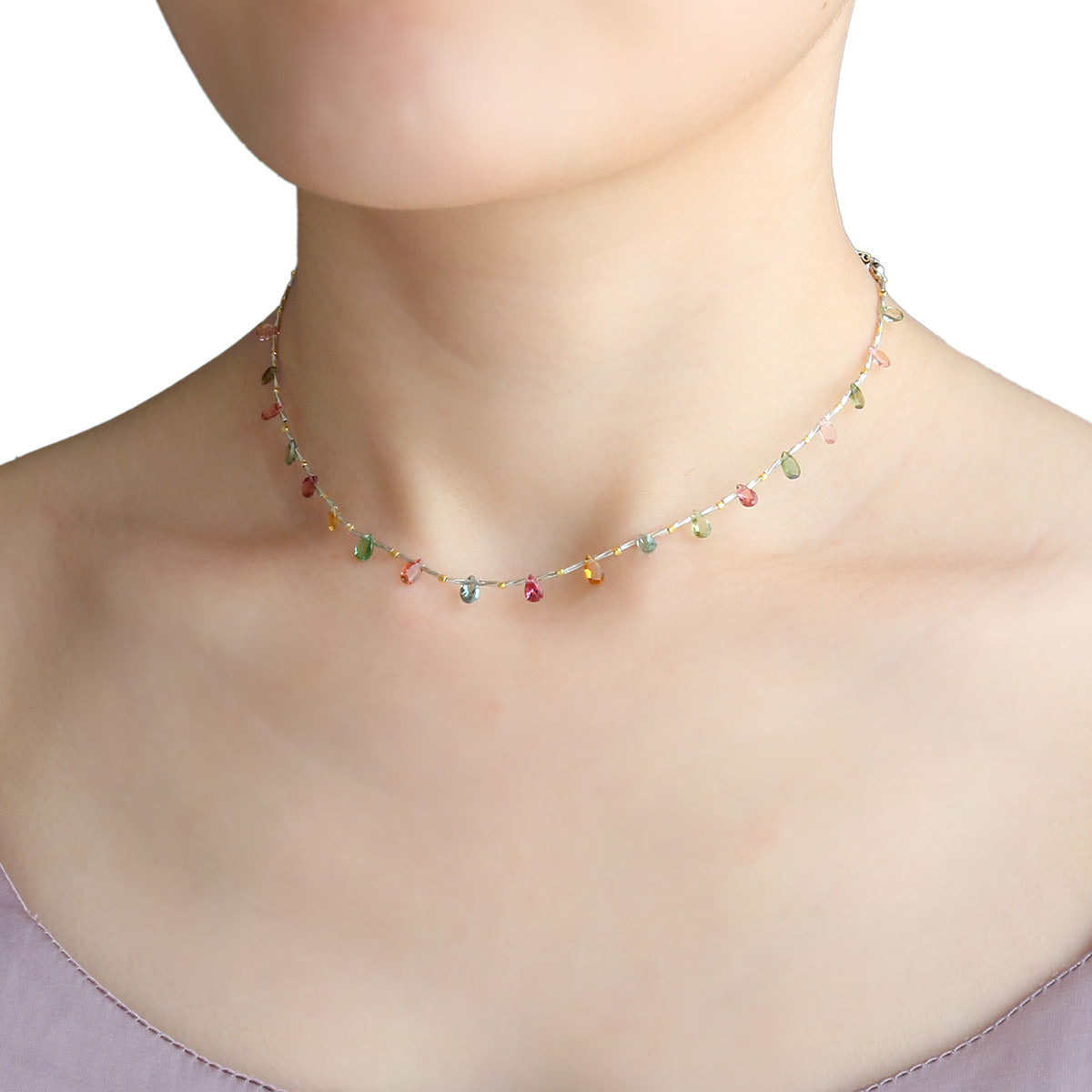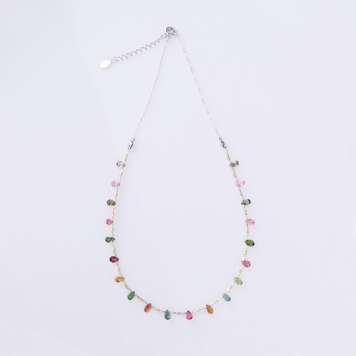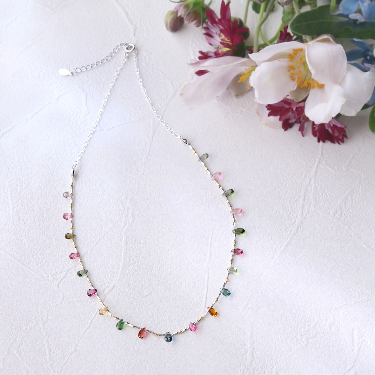 【10月誕生石】マルチカラートルマリンペアシェイプチョーカーネックレス| Silver925