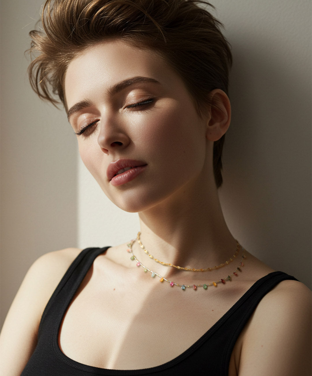 アフリカ産マルチカラートルマリンの贅沢なチョーカーネックレス