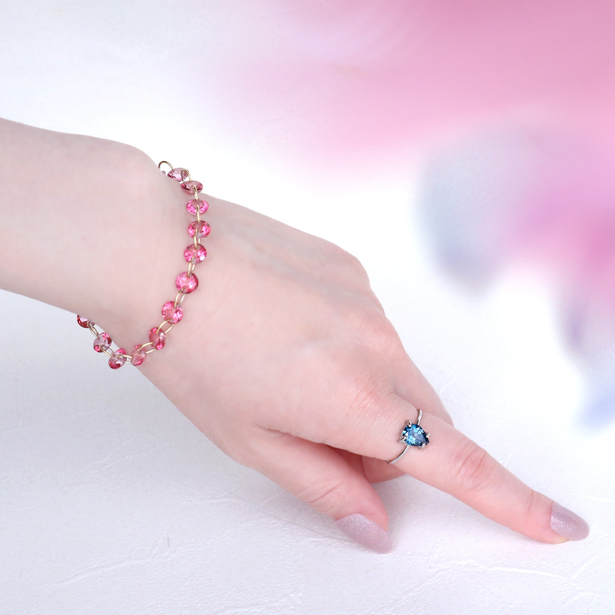 【11月誕生石】ピンクトパーズラウンドファセットカットブレスレット|Silver 925